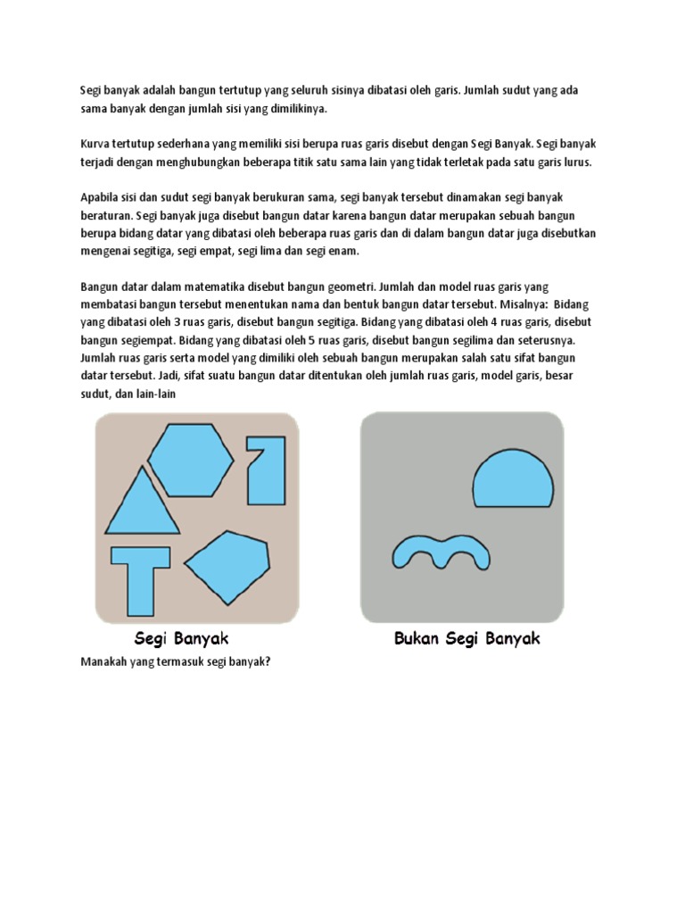 Segi banyak beraturan dan segi banyak tidak beraturan kls 4 tema 1 subtema 1 pb 5. D 1 d 2 keliling k 2. Segitiga siku siku merupakan salah satu contoh bangun datar segi banyak. Segi banyak tidak beraturan memiliki ciri, yaitu : Contoh bangun segi banyak tak beraturan: 8 x luas segitiga sama kaki dengan sudut atasnya 45°. Contoh bangun segi banyak dalam kehidupan sehari hari. Segi banyak beraturan o g f e d b c a komponen gambar 8 contoh : Segi banyak beraturan vs segi banyak tidak beraturan vs bukan segi banyak kelas 4 bab 5 (segi banyak) kurikulum. Contoh segi banyak beraturan dan tidak beraturan dalam kehidupan sehari hari!masing masing 3buah. Sedangkan contoh nama nama segi banyak tak beraturan antara lain: Peserta didik diminta untuk mengamati pengertian tentang segi banyak beraturan. Contoh soal segiempat dan segitiga matematika smp 1.